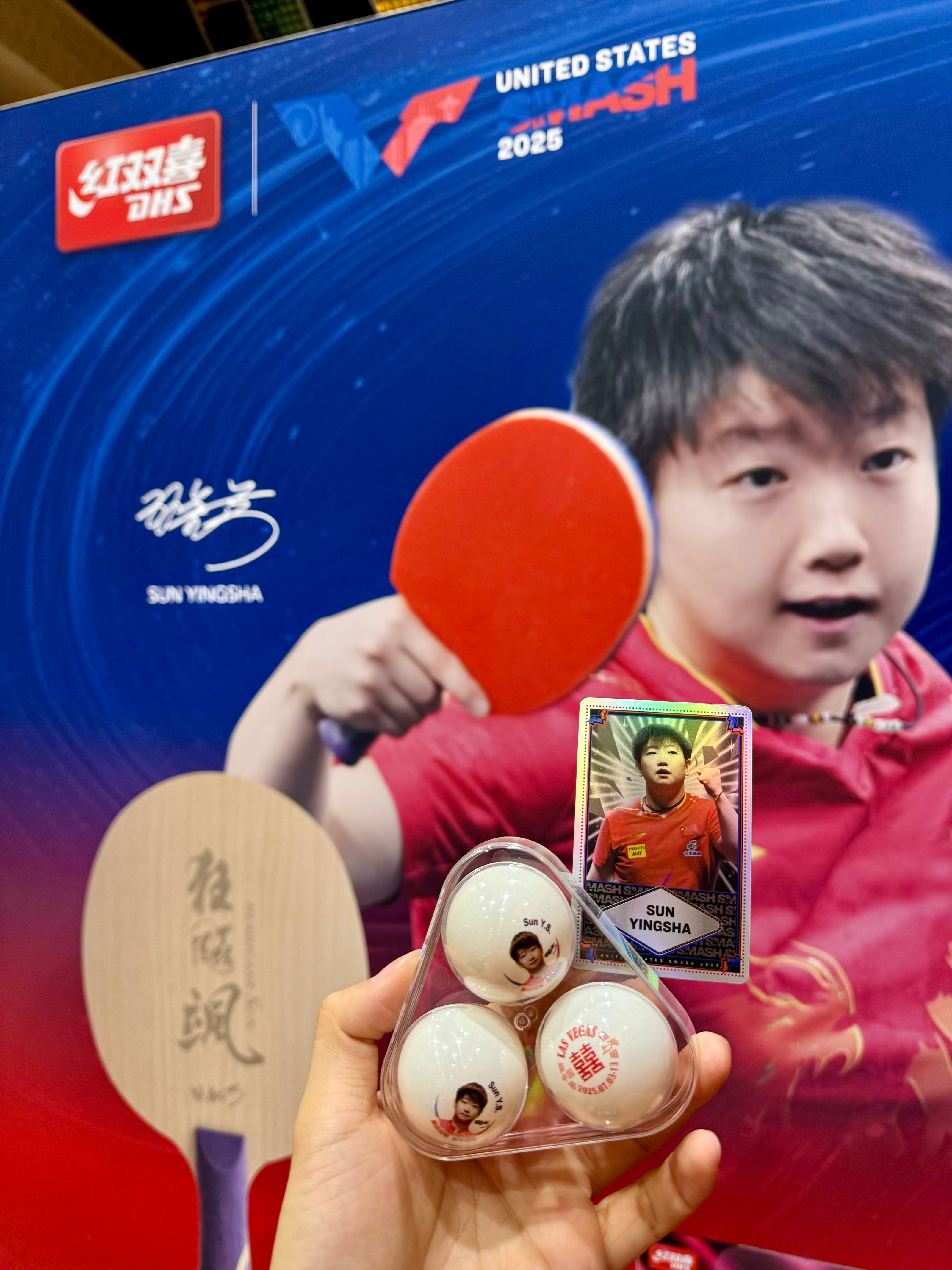 Among the most celebrated were the Portrait Balls, featuring table tennis icons Sun Yingsha, and Wang Chuqin. Each ball displays a player’s portrait and signature on the front, with the DHS logo and the inscription Las Vegas 2025 on the back — a truly collectible piece for fans worldwide.