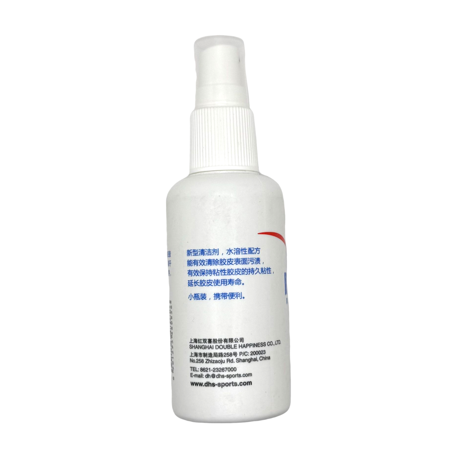 DHS Table Tennis(DHS Ping Pong) Rubber Cleaner with a new water-soluble formula. Effectively removes surface dirt from the rubber, helps maintain long-lasting tackiness for sticky rubbers, and extends the rubber’s lifespan.